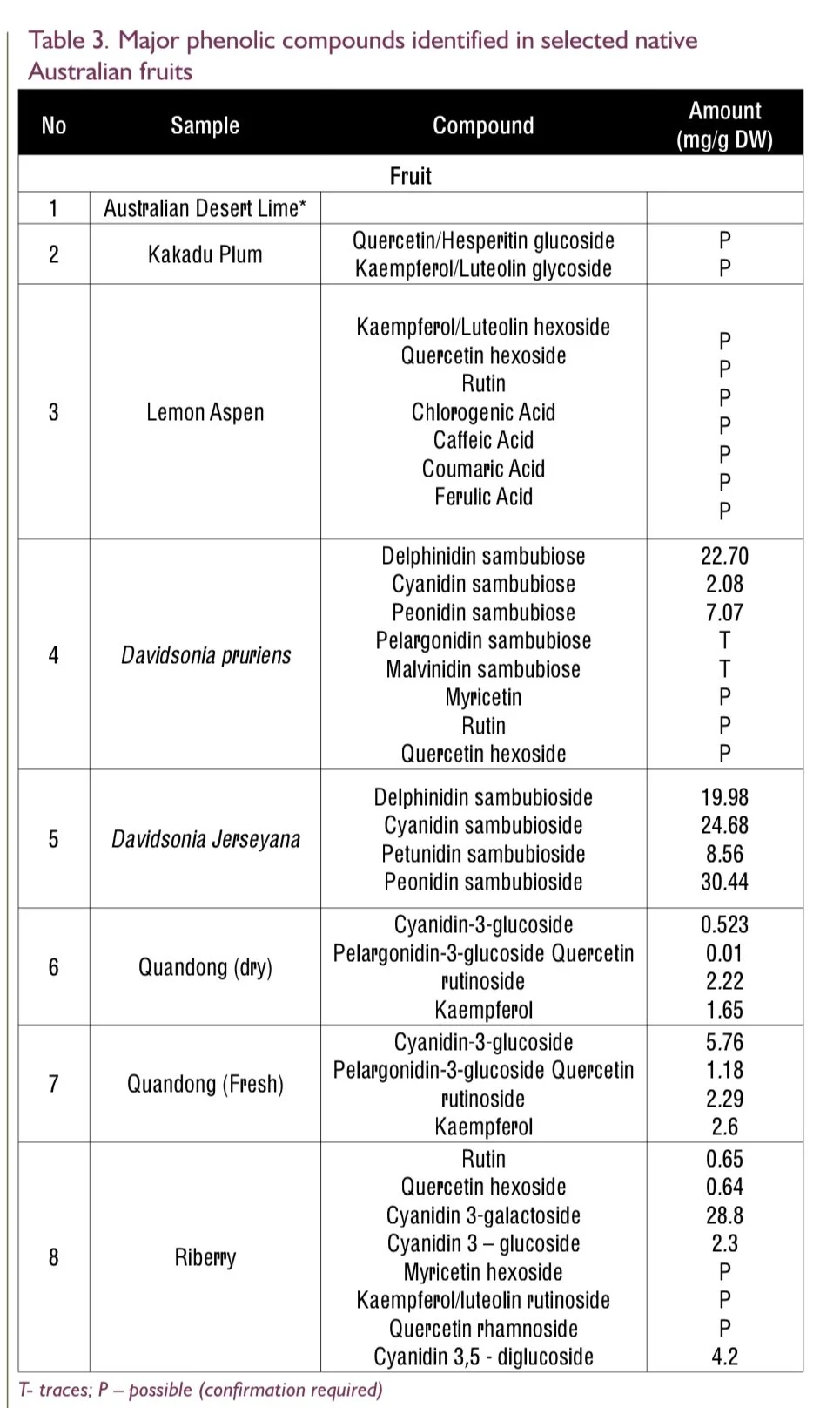 Western fruits are considered a poor source of lipophilic antioxidants (Prior et al. Citation2003).Several studies have reported that in addition to vitamin E, different Australian native plants consist of potent phenolic antioxidants.