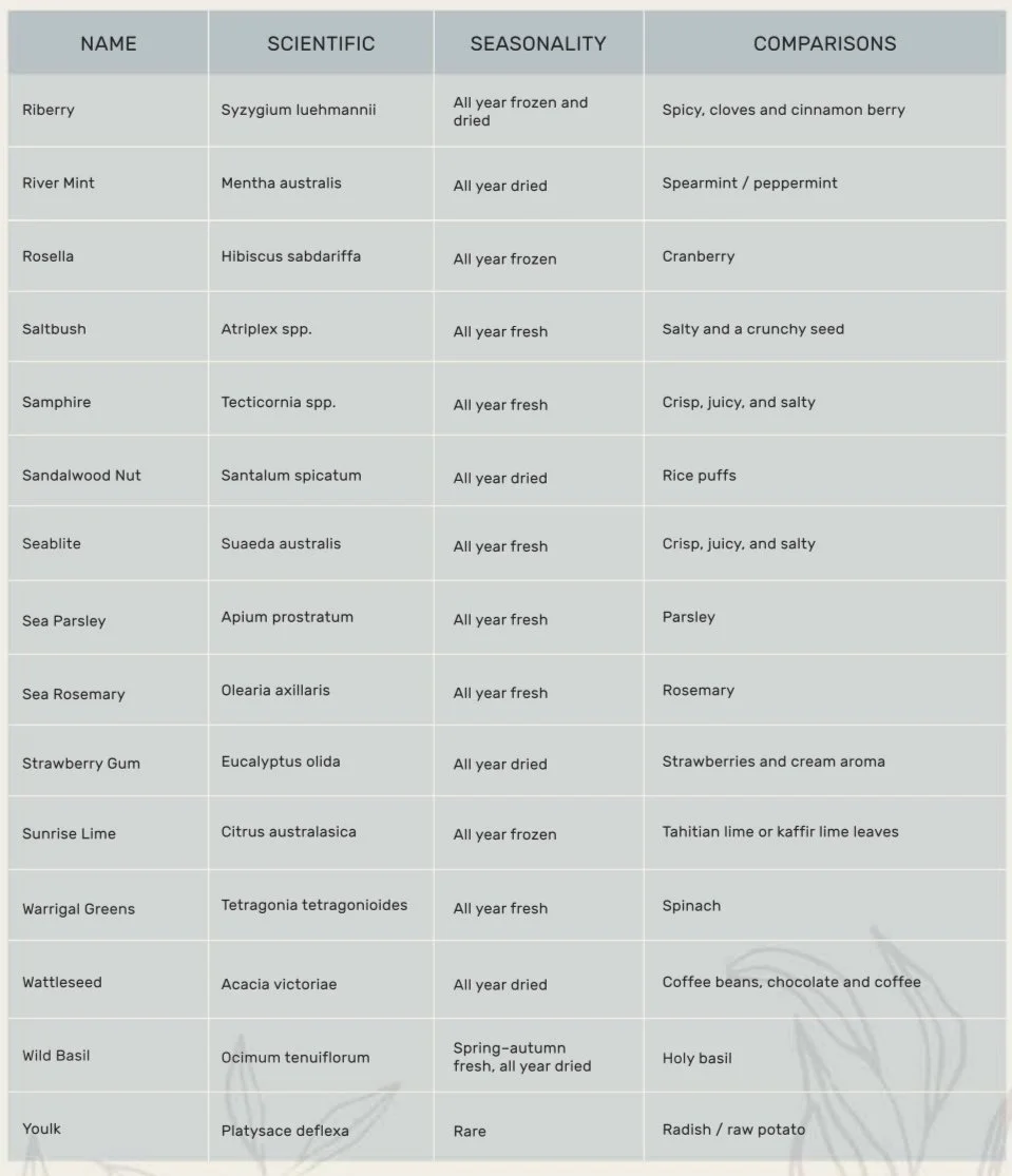 Below is from Shop natives at Warndu. A great guide to get using these ingredient in your home and what it compares to with flavours you might be more used to using in cooking.