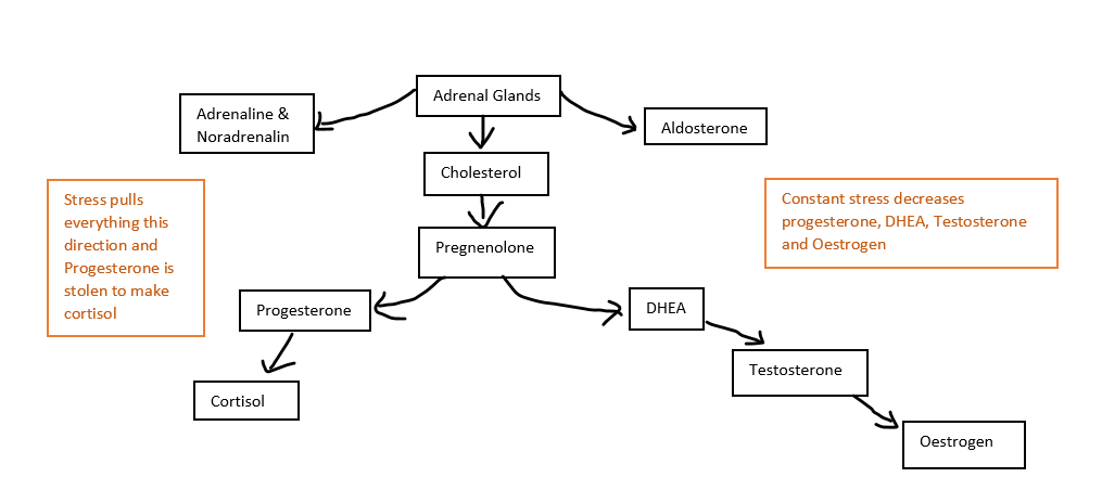 This is why men who are chronically stressed have issues with low testosterone and women can loose their periods.