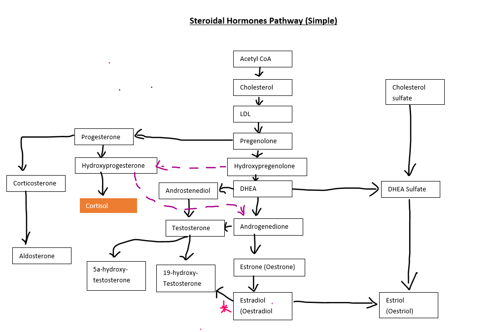 So when we have high cortisol we get low DHEA and low testosterone (high blood sugar levels, smoking and digoxin toxicity also decrease these)